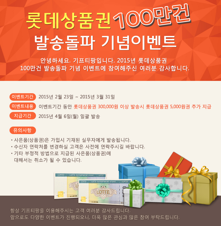 롯데상품권 100만건 발송돌파 기념 이벤트